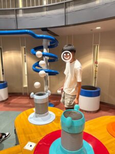 特に暗闇迷路という真っ暗中で五感を使って脱出するものが楽しかったようです。他にも科学を体験できるもので満ち溢れていました。