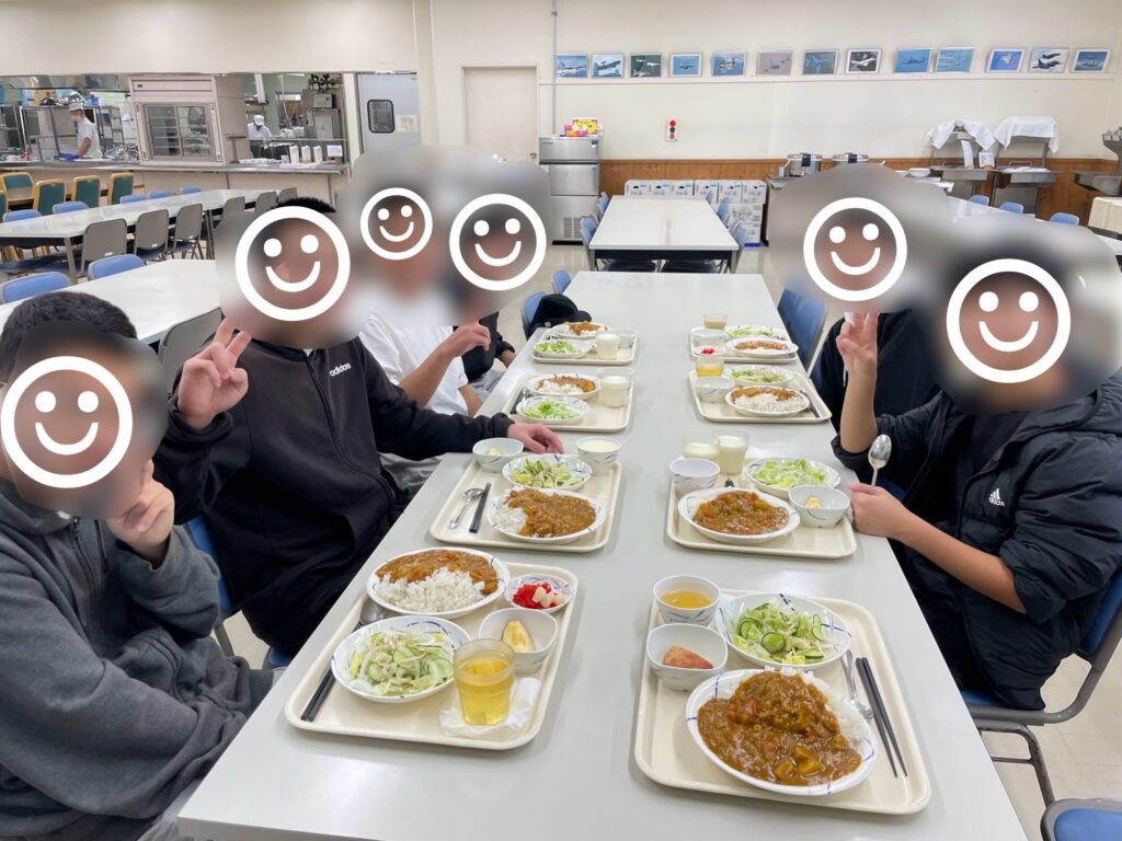 ご飯は自分でよそってあとは食堂形式でしたが、寮生はまるで漫画に出てくるようなごはん大盛りにしていて、案内してくれた隊員の方は好きなだけ沢山食べてください!と言ってくださいましたが、本当に沢山食べていました(笑)